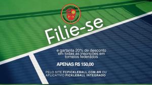 A Federação Catarinense de Pickleball em parceria com as arenas federadas estabeleceu uma vantagem para os atletas, 20% de desconto em cada inscrição de qualquer torneio federado de 2026. Por apenas R$ 150, 00 o atleta garante…